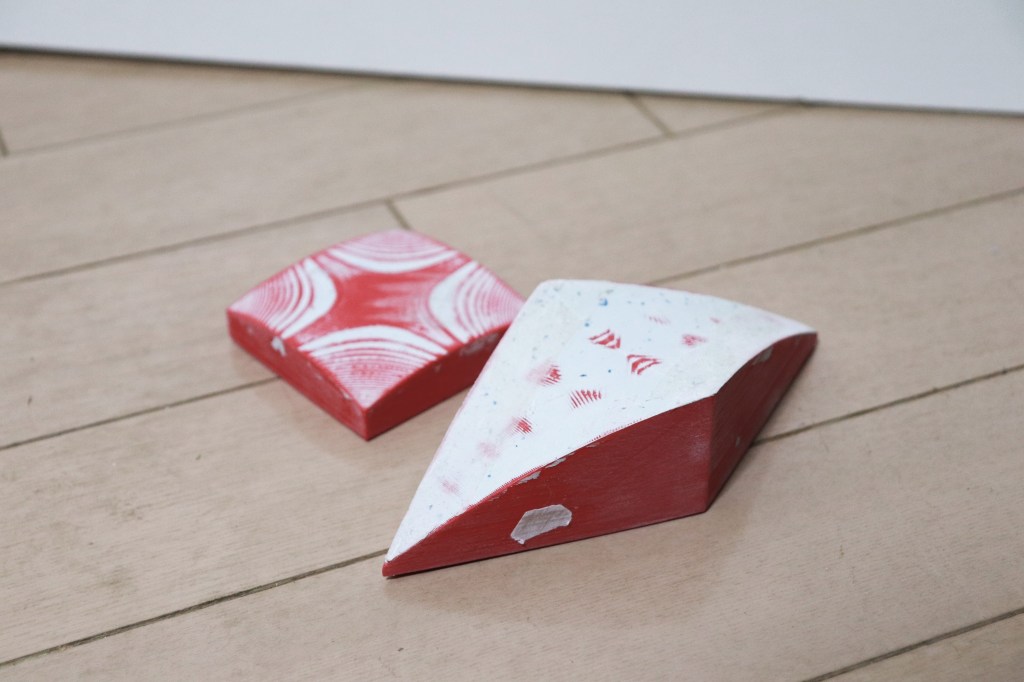 右上:バキュームフォーム用に作成した曲面の型。3Dプリントで作成したのち、パテで積層跡を埋めてやすりで表面を滑らかにした。