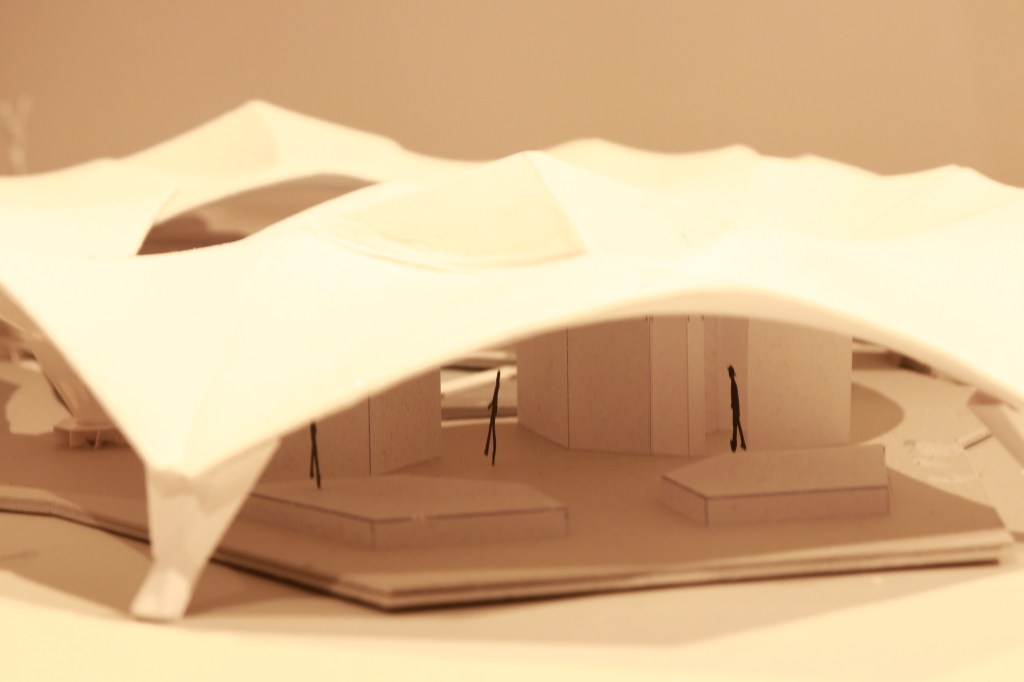 オットーはフニクラ(吊り模型)やシャボン玉模型など様々な手法を用いてフォームファインディングを行った建築家である。自然現象によってできる形を建築に応用した作品は、構造的合理性を持ちながら、その形態の切り取り方から彼自身の美意識を見ることができる。オットーの模型はファインディング(模索)という言葉であるように、自然現象を再現するための装置のようなものである。重力や張力などの自然現象とともに形態を模索するオットーの