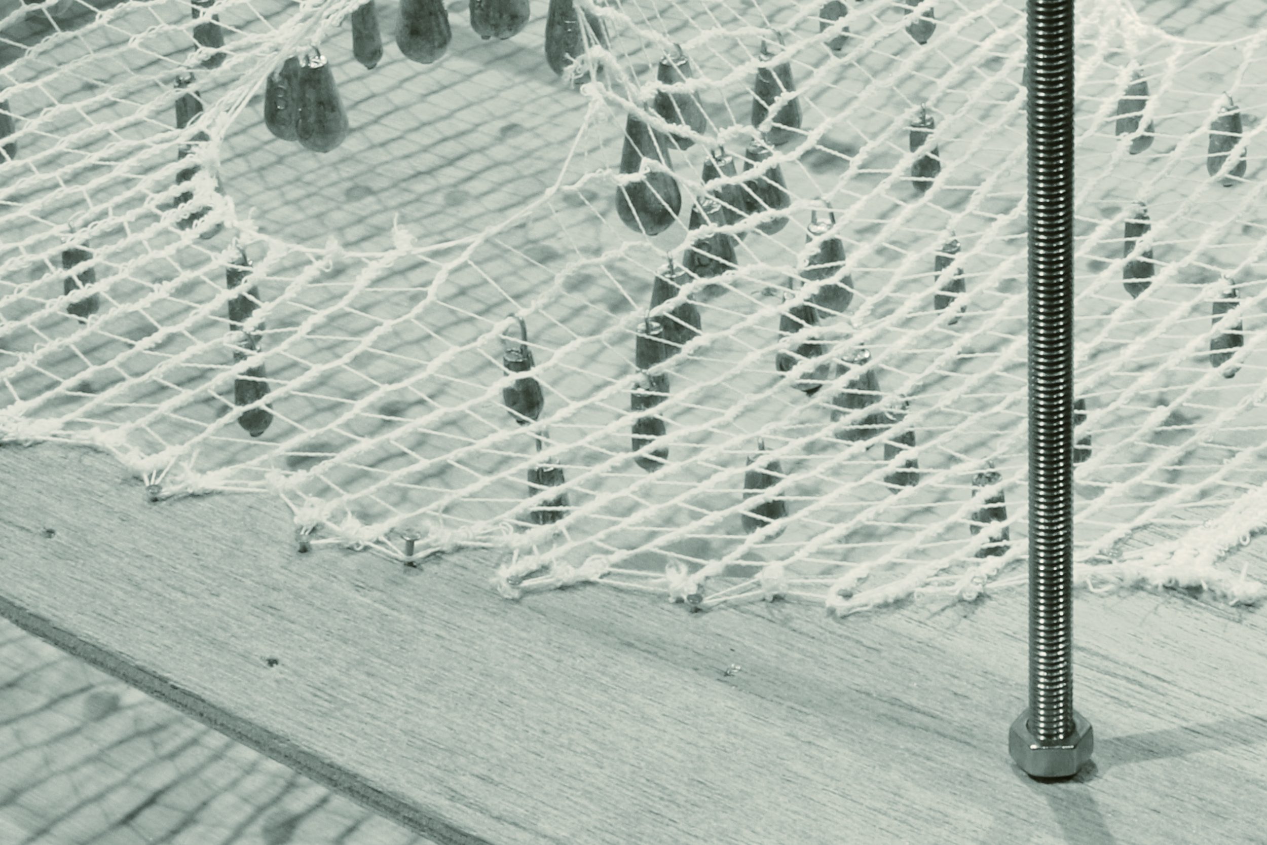 ネットに垂直荷重を与えるために、釣り糸用のおもりを使用した。重さのバリエーションがあり、適宜選択しながら配置することができる。